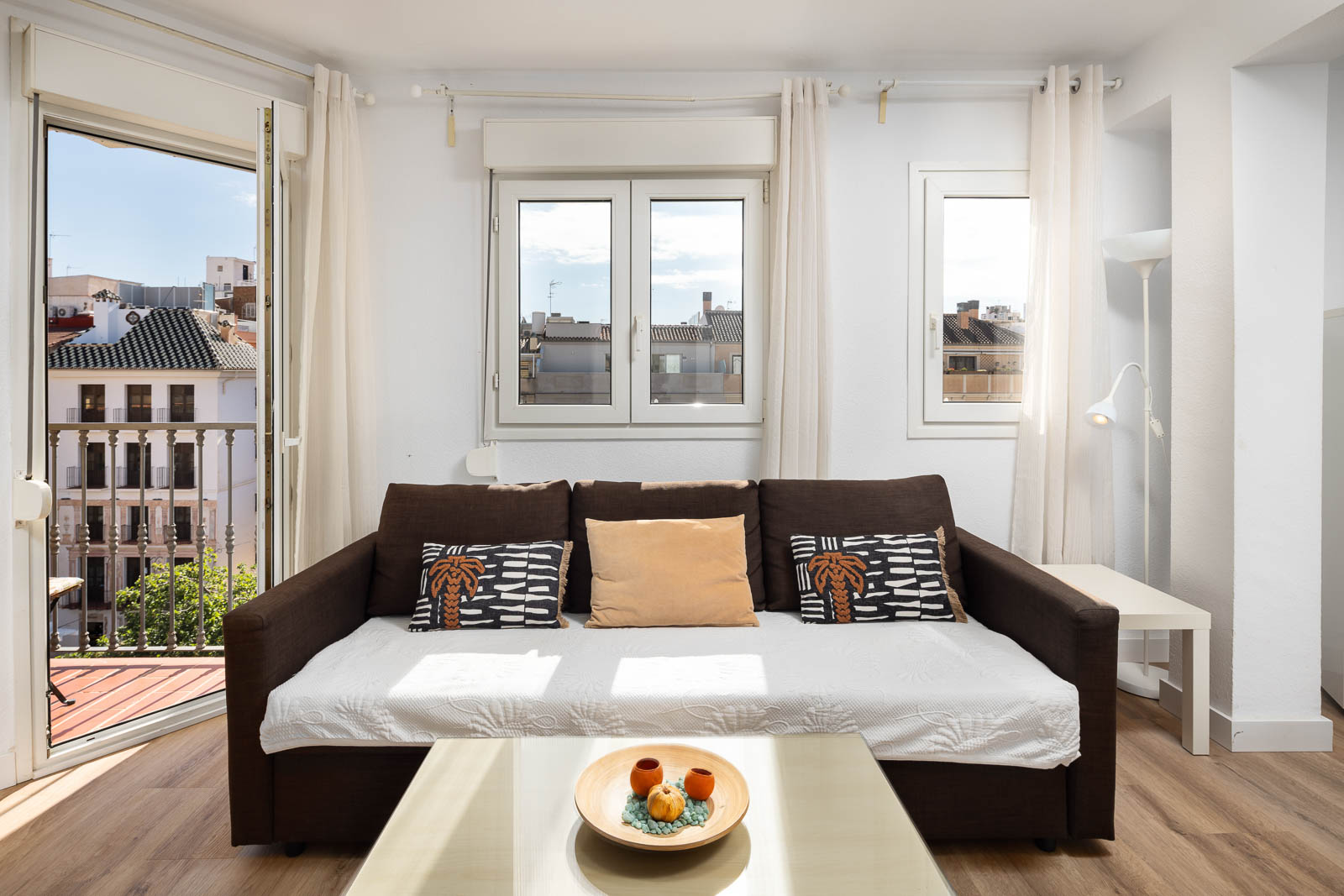 Flat in the historic centre of Malaga, belonging to the Morgan flats complex, very sunny with living room and kitchen with breakfast bar, 1 bedroom, exterior bathroom and all services, restaurants, taxi rank and bus stop and 300 metres from Calle Larios, and Alameda Principal.